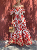Casual Floral Print Off-Shoulder Puff Sleeve Maxi Dress