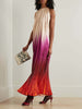 Elegant Gradient Pleated Print Halter Neck Maxi Dress