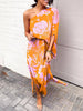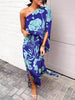 Exquisite Rose Print One Shoulder Slit Maxi Dress