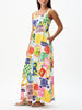 Unique Tie Back Closure Graphic Print Loose Holiday Maxi Dress