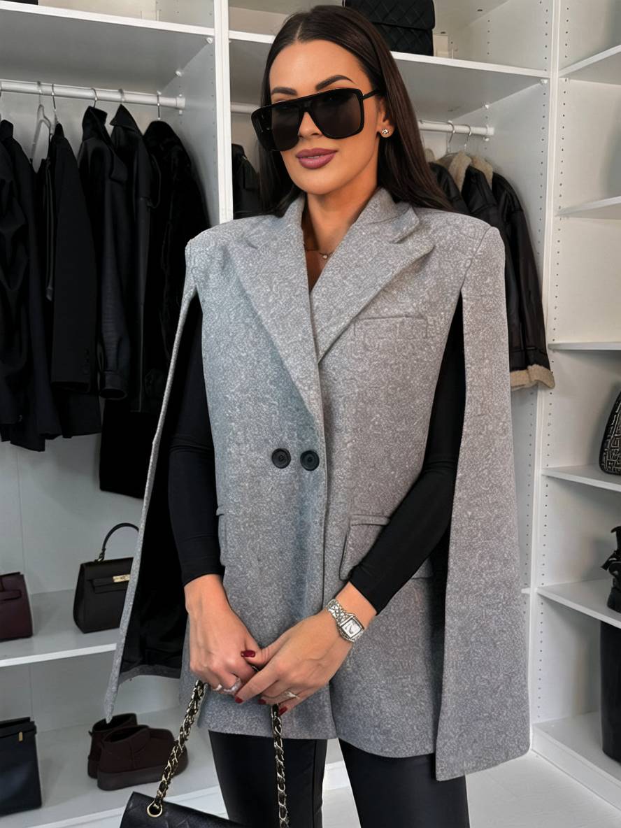 • Unicolor poncho coat for women with elegant casual style