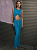 Aurohaya Giselle Cutout Draped Maxi Dress BULE