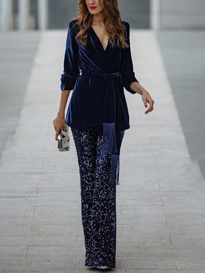 Made from premium fabric, this blazer is soft and breathable for all-day wear. The blazer's classic fringe tie adds a touch of stylish personality, and the waist ensures a comfortable fit.