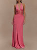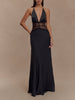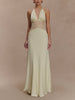 Elegant Lace-Panel V-Neck Lace-Up Satin Maxi Dress