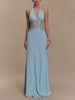 Indulge in refined elegance with our Elegant Lace-Panel V-Neck Lace-Up Satin Maxi Dress. Turn heads and leave a lasting impression in this effortlessly elegant statement piece.