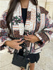 Floral Patchwork Print Lapel Pocket Jacket