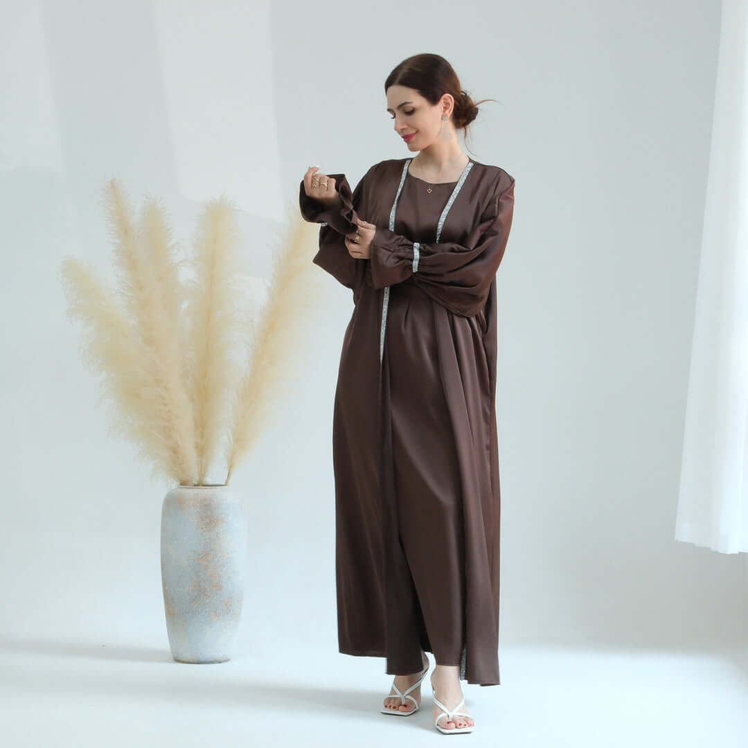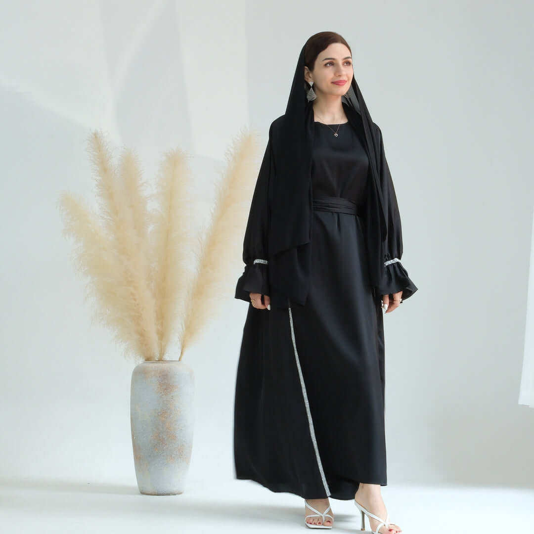 • Semi-Transparent Floral Lace Abaya: Adorned with Rhinestones