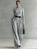 Elegant High Neck Slim Fit Long Sleeve Top Two-Piece Set
