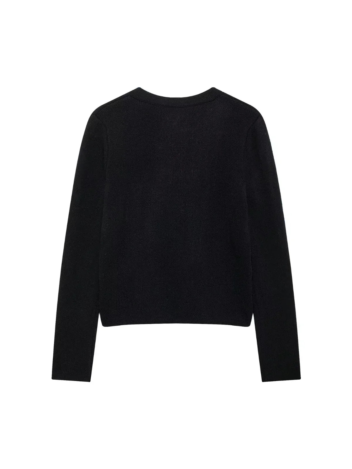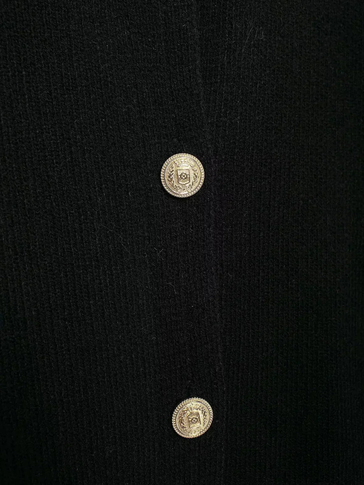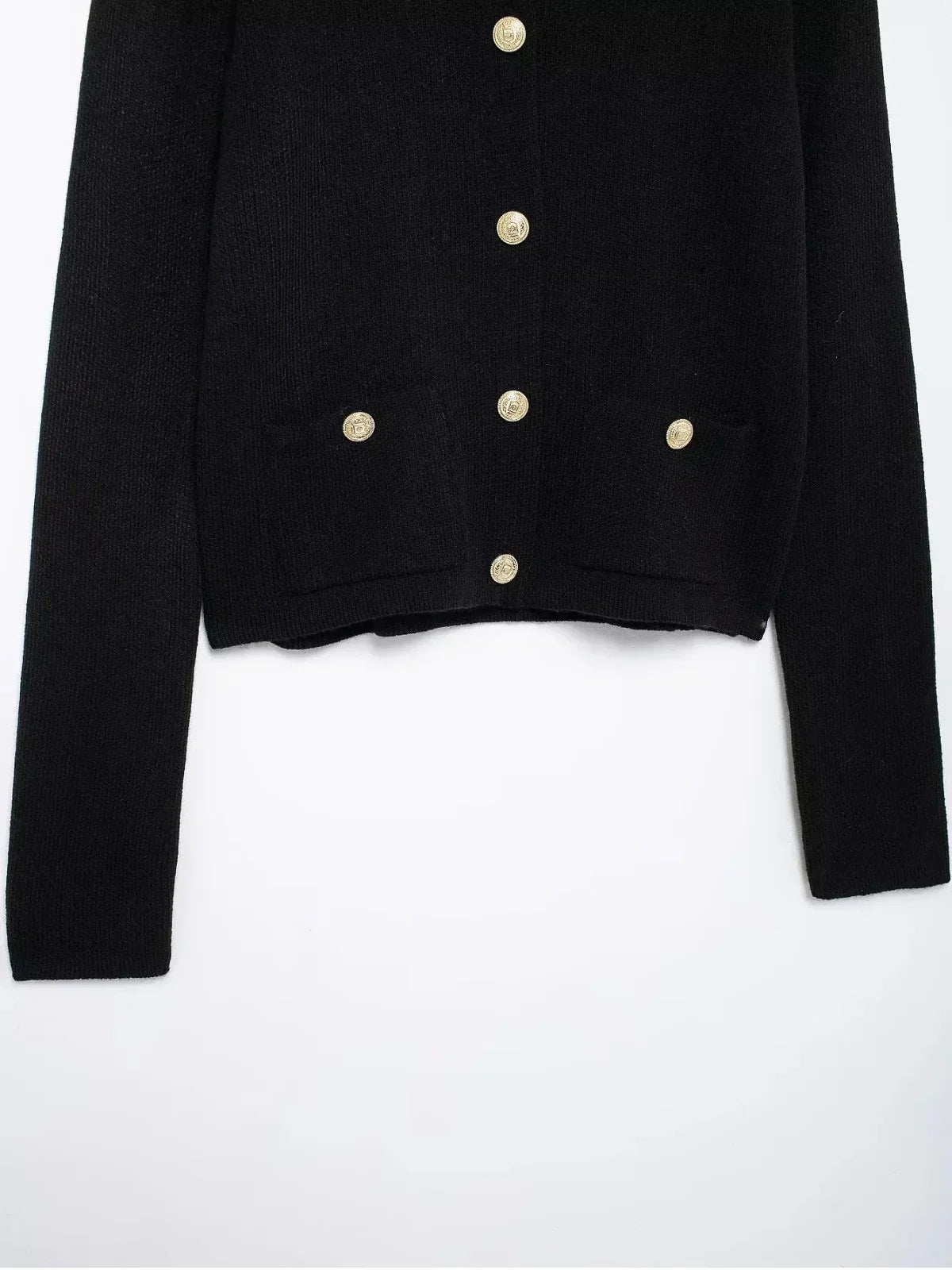 Gold Decorated Row Button Short Knitted Cardigan (Size): S