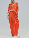 This V-neck satin maxi dress, resembling a robe, exudes effortless elegance.