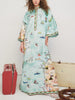 Be stylish and comfortable in our Modern Satin Art Island Print Slit Maxi Dress.