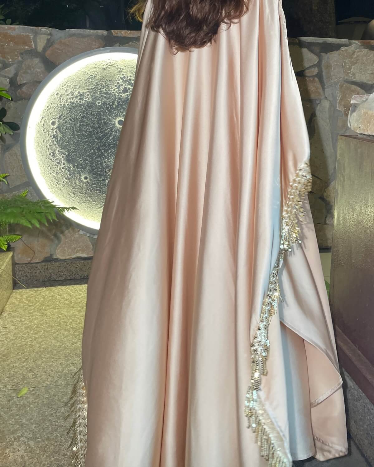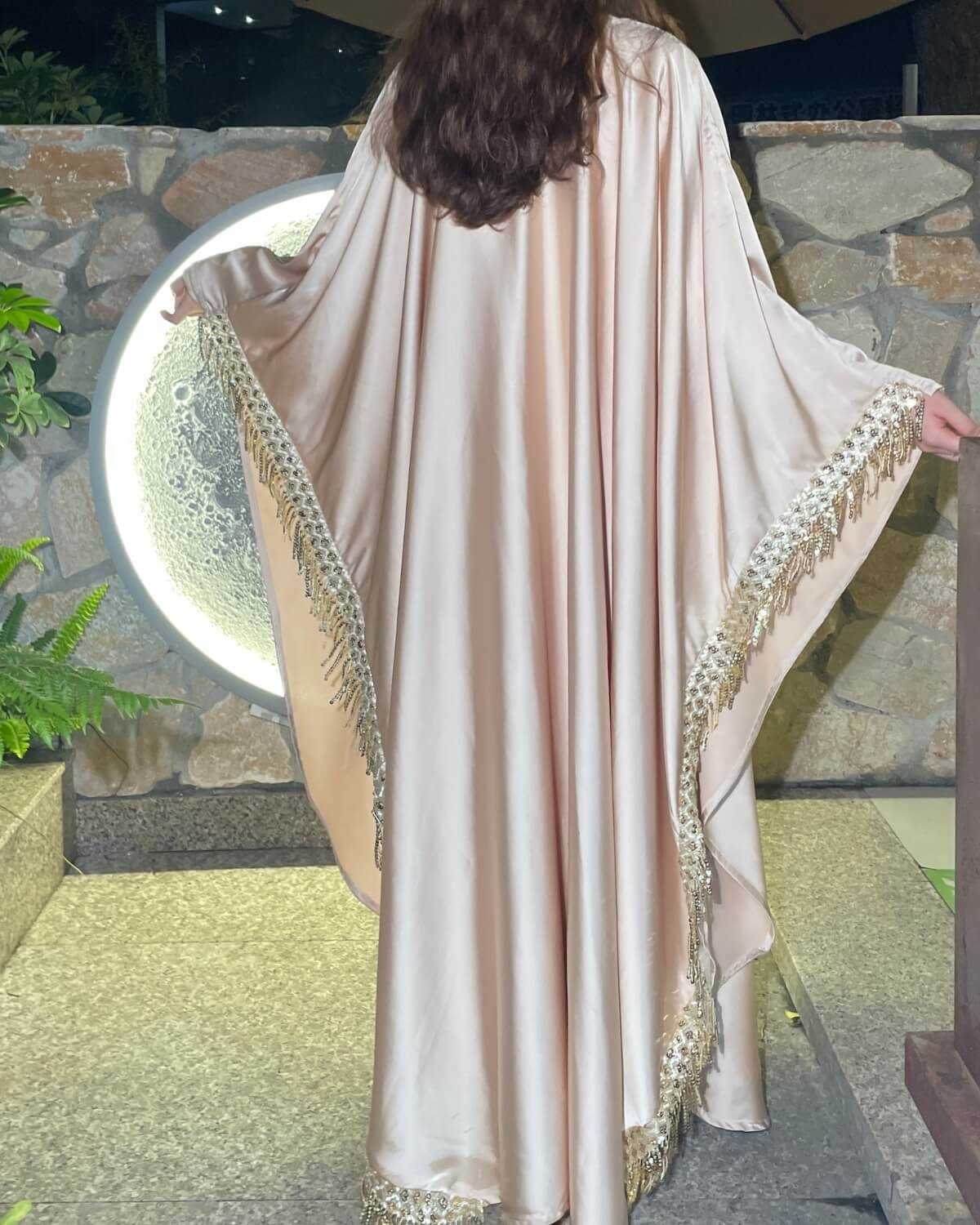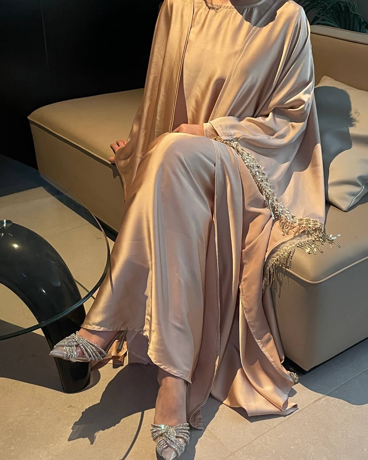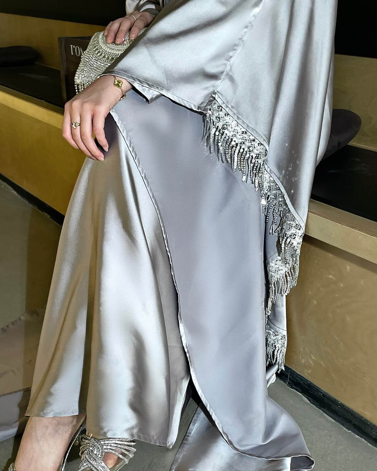 • Style: Premium satin tassel butterfly abaya dress 3‑piece set