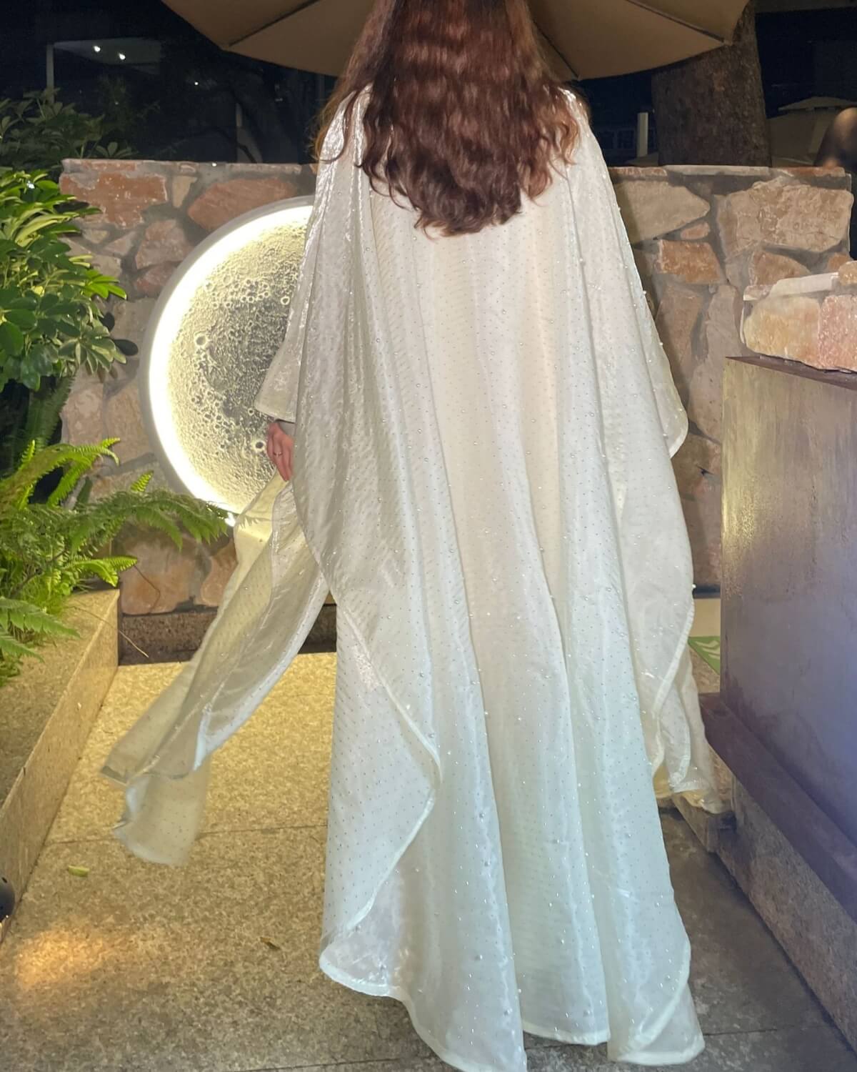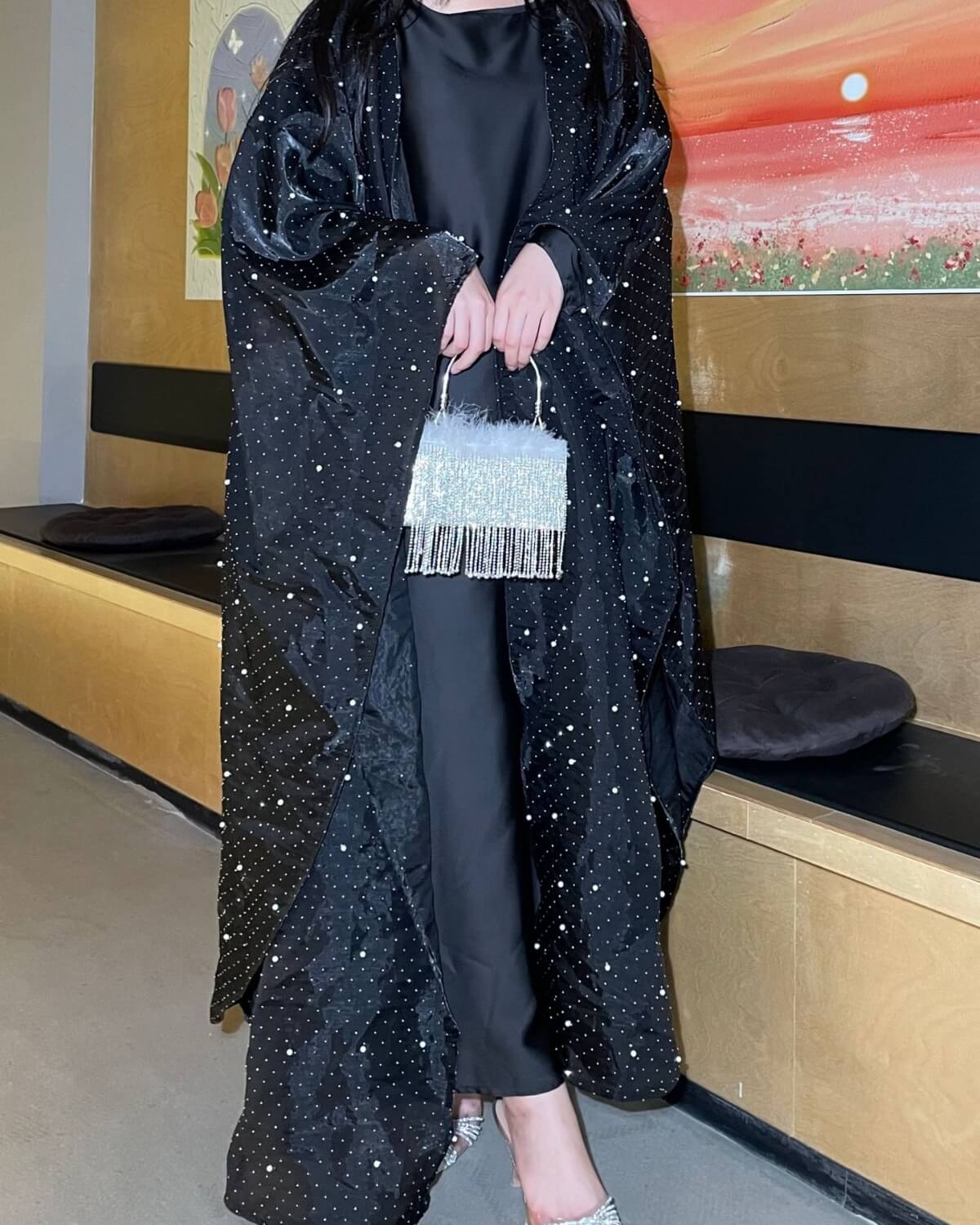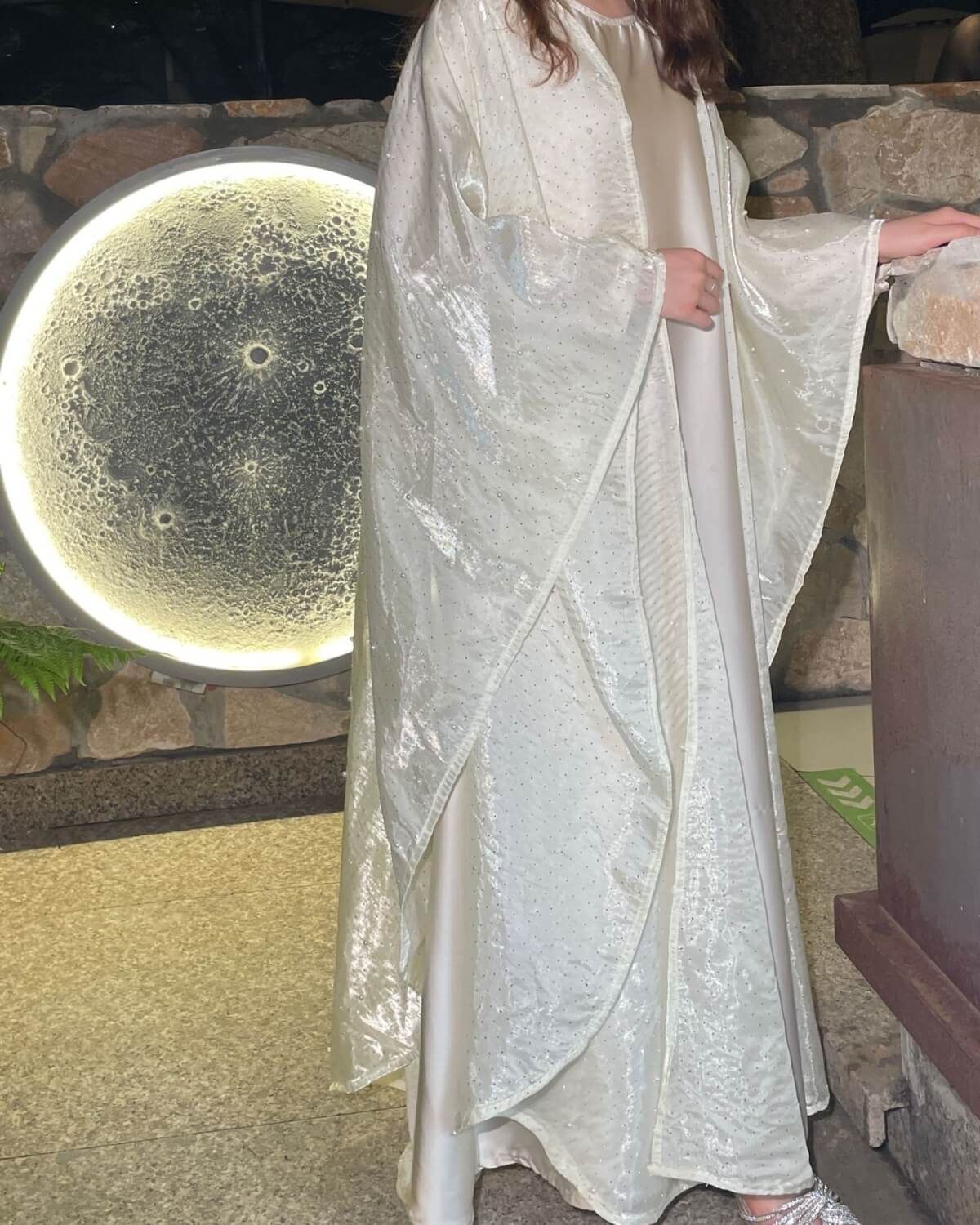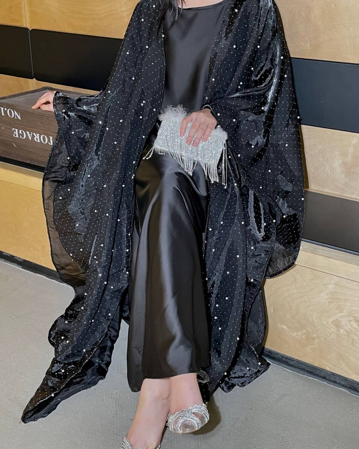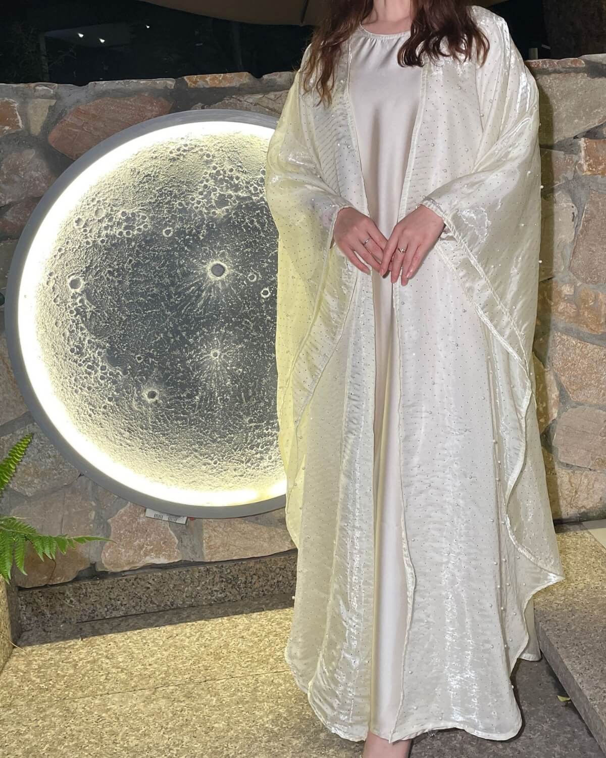• 1 StarLight Pearl Organza Open Abaya Dress