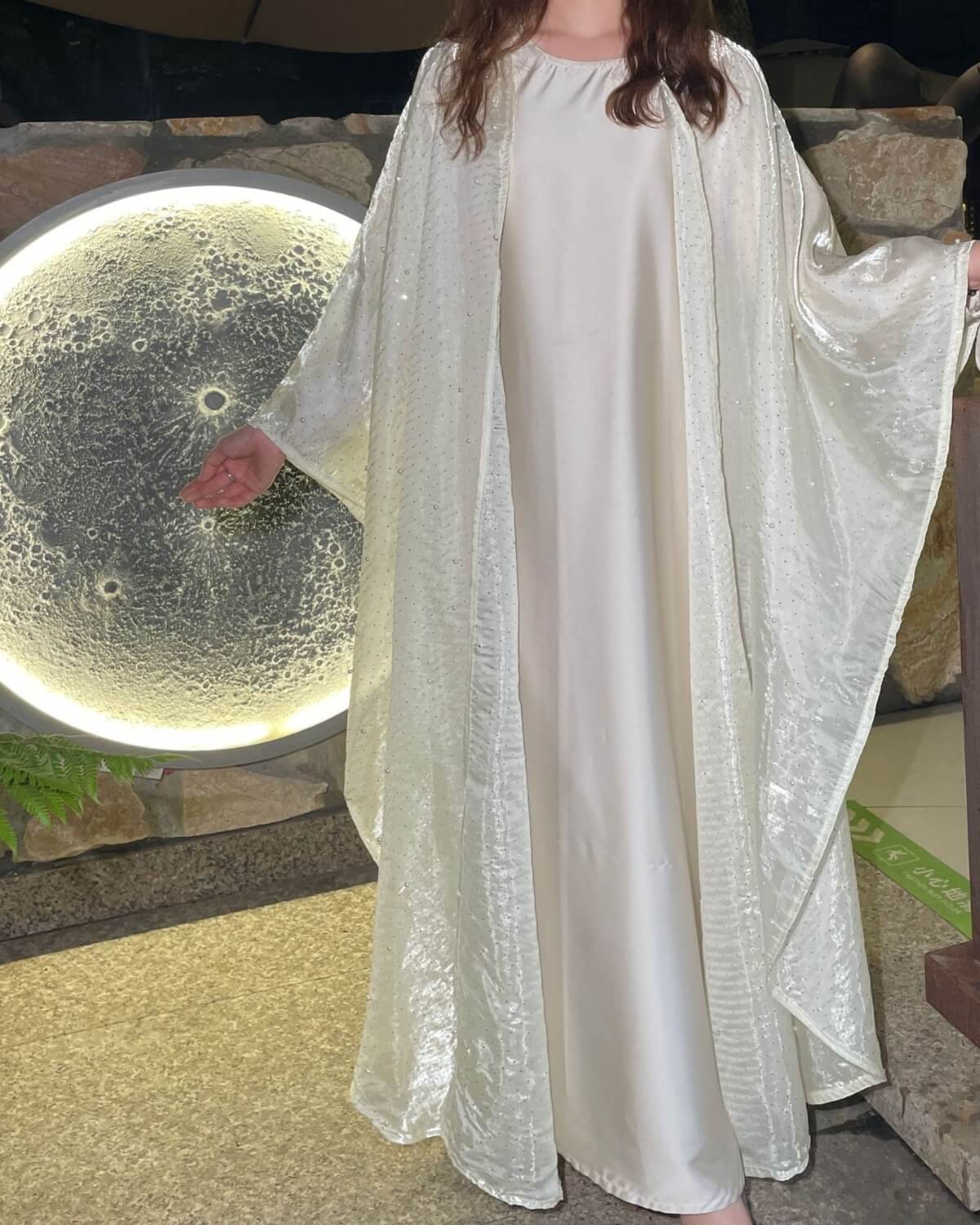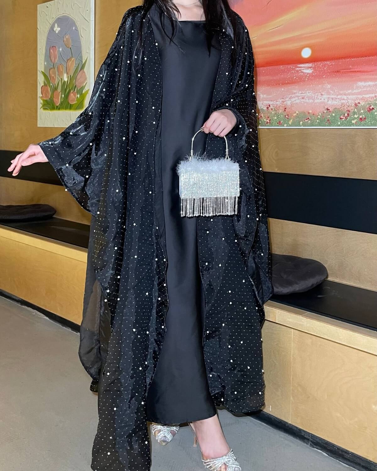StarLight Pearl Organza Open Abaya Dress 2-Piece Set