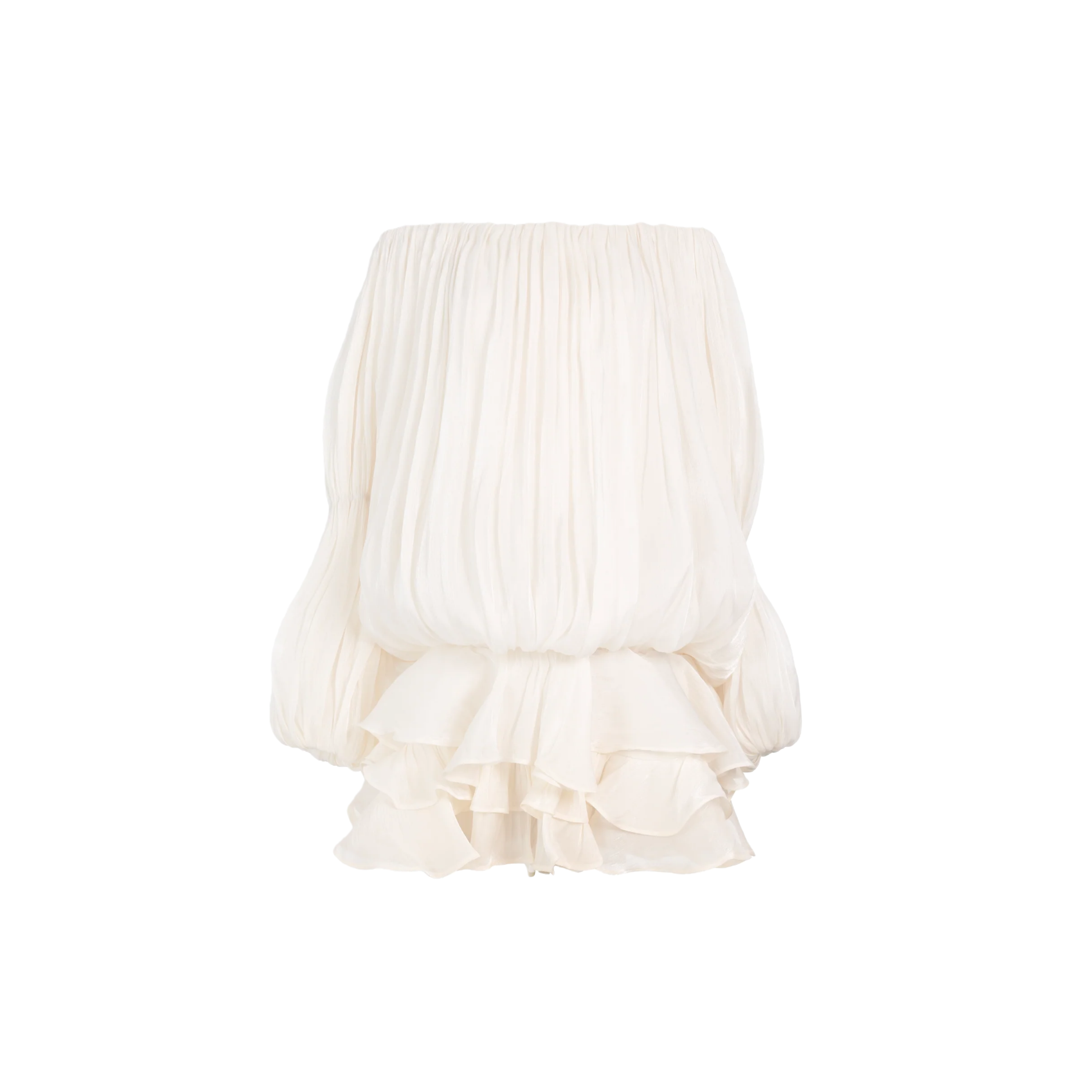 Florence White Glossy Pleated Tiered Mini Dress