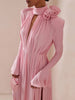 Three-Dimensional Flower Deep V Pleated Maxi Dress