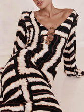 Bohemian Style Unique Printed V Tie Ring Maxi Dress