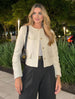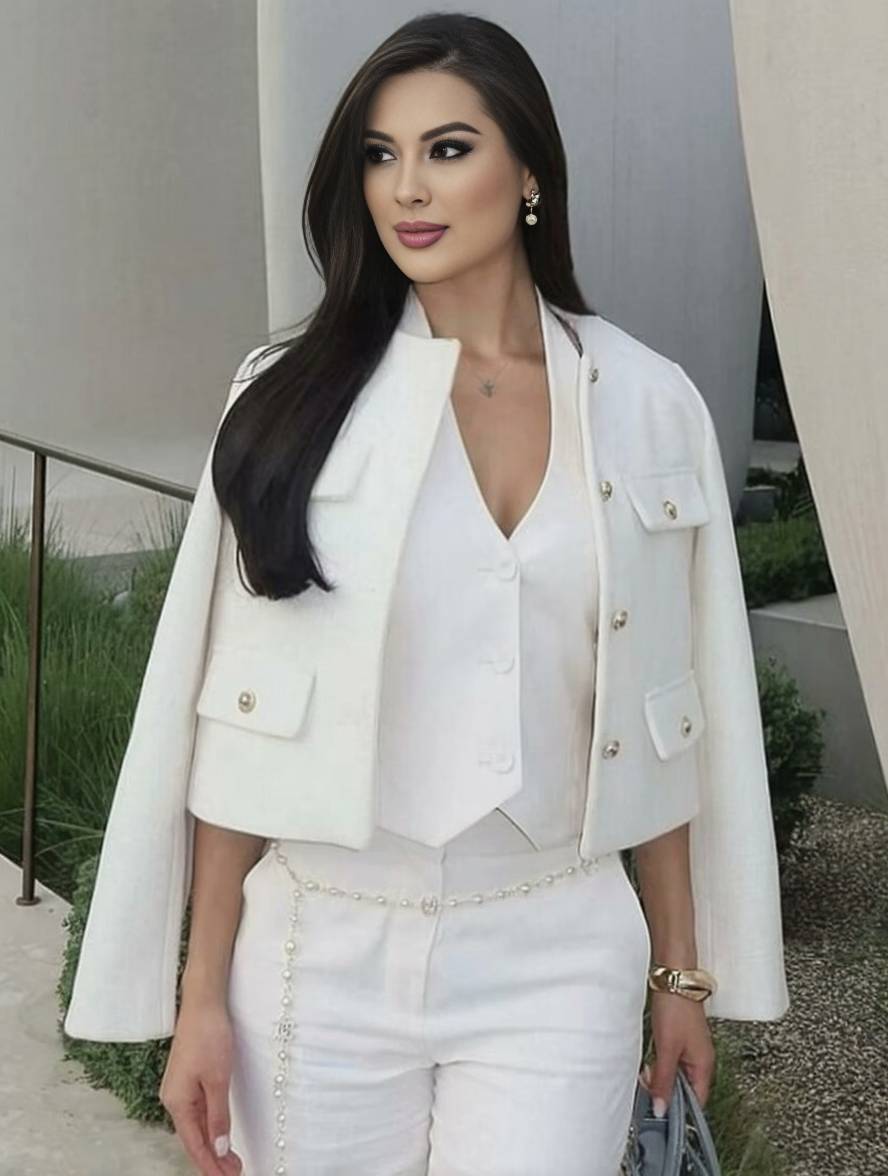 Tweed court blazer for women — a short, round-collar tweed jacket with button-front closure and practical pockets, designed for elegant casual fashion in autumn and winter. This buttoned tweed blazer combines classic court-style tailoring with modern comfort: long sleeves, a cropped/short length that flatters the waist, and a polished unicolour finish in durable tweed/polyester fabric. Ideal for office looks, weekend dates, or polished everyday wear, this pocketed jacket delivers warmth, structure, and easy-care performance while remaining highly shoppable for queries like tweed blazer, court jacket, round collar blazer, buttoned women’s jacket.