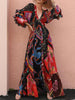 Bohemian Floral Print Patchwork Buckle Flounce V Neck Maxi Dress