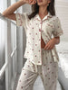 Cherry Print Design: Adorned with adorable cherry prints, this pajama set exudes a whimsical charm that adds a touch of fun to your nighttime routine. Let the cheerful cherry motifs inspire sweet dreams and playful relaxation.