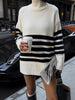 Classic Black And White Color Matching Loose Mock Neck Stripe Sweater