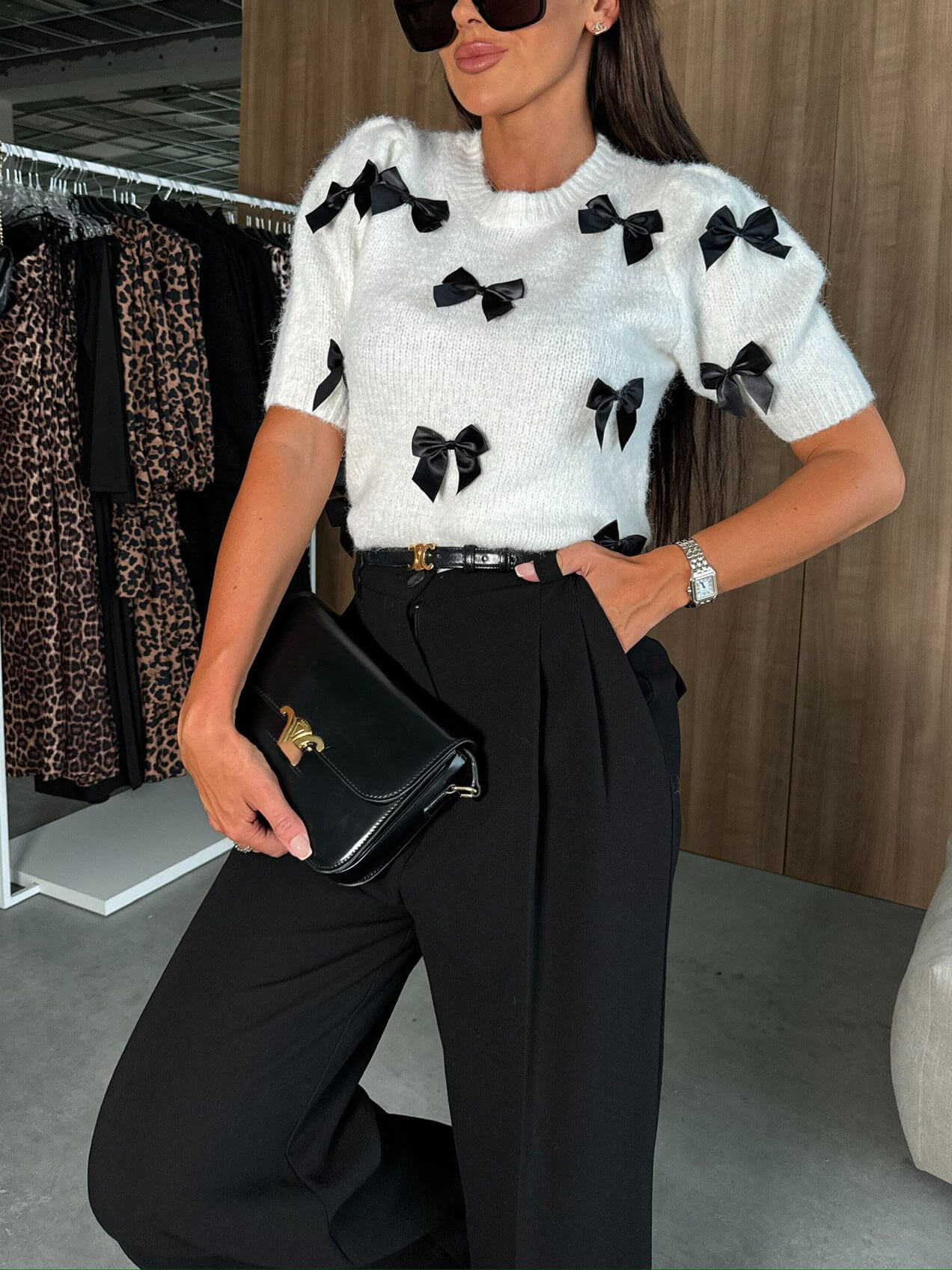 The "Chic Bow Knit Top" is a stylish and elegant piece featuring a decorative bow detail that adds a feminine touch. aurohaya®Made from soft, comfortable knit fabric, this top is perfect for both casual and semi-formal occasions. Its flattering fit and chic design make it a versatile addition to any wardrobe.