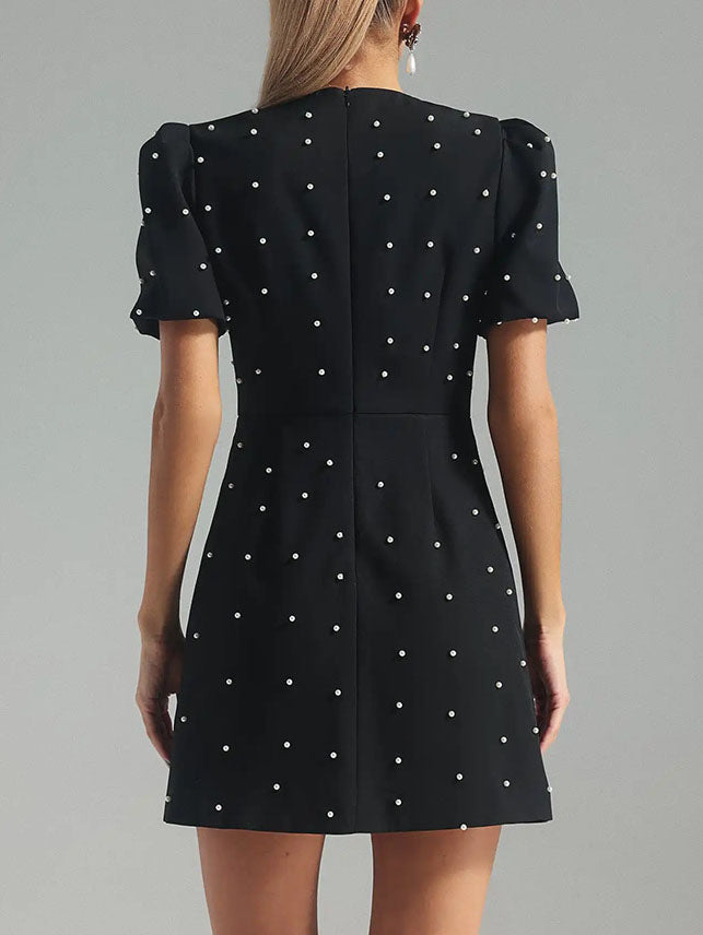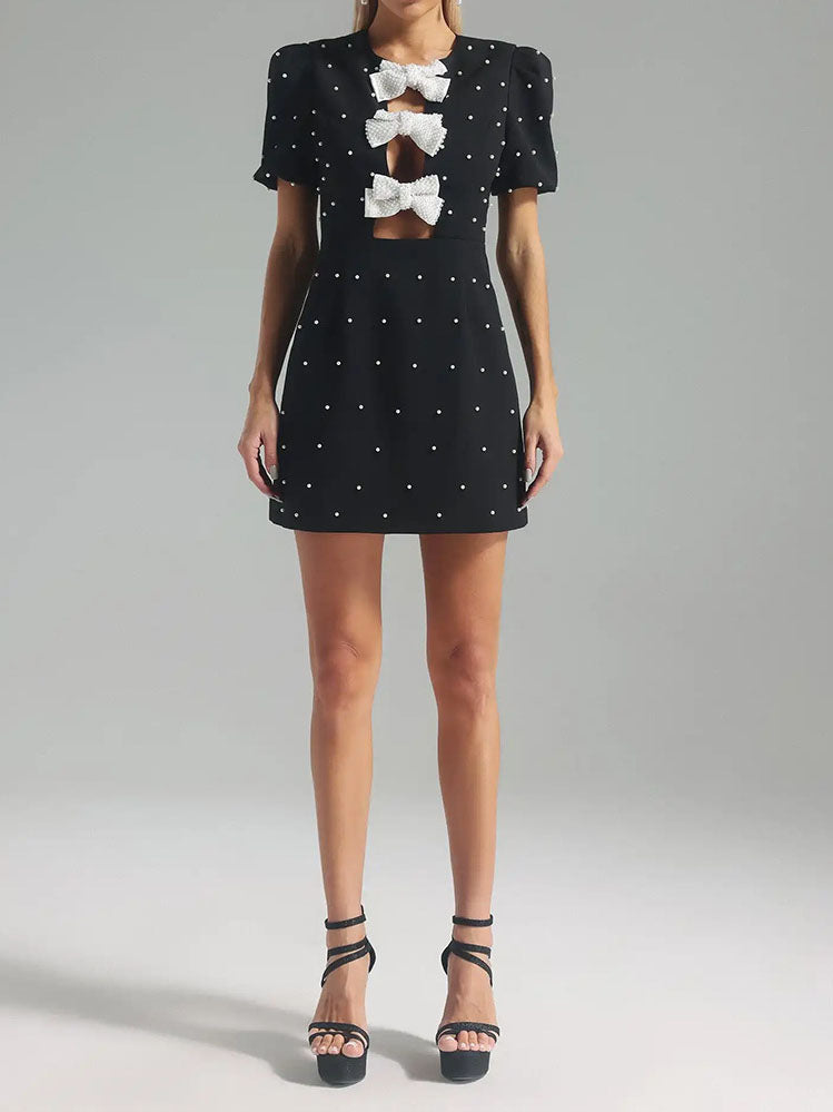 Elegant And Exquisite Bow Puff Sleeve Mini Dress