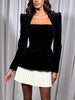 Stay stylish and comfortable in our Elegant Colorblock Pleated Hem Mini Dress.
