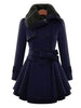 Aurohaya Elegant Double Breasted Faux Fur Collar Midi Coat with Belt for Women Winter Parka