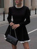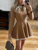 Elegant Lace Panel High Waist Long Sleeve Mini Dress