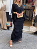 Elegant Layered Asymmetrical Ruffled Cape Maxi Dress