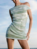 Show off your elegant and chic style with this classy off-the-shoulder sequined mini dress.