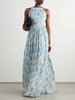 Elegant Painted Floral Print Chiffon Pleated Maxi Dress