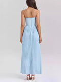 Experience timeless elegance with the Elegant Pleated Strapless Maxi Dress from aurohaya®.