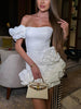 everyone with this elegant ruffled sheath mini dress. The ruffled hem and one-shoulder ruffle create a delightful and elegant vibe, while the luxurious material and off-the-shoulder design make this piece look absolutely stunning and alluring. Complete the look with your favorite heels and a small bag.