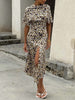 Crafted from luxuriously smooth satin, this dress features a delicate floral print that adds a touch of romantic elegance, while the thigh-high slit adds a subtle touch of glamour. Perfect for daytime gatherings or evening soirees, this dress is perfect for both daytime gatherings and evening outings.