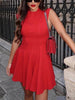 Be stylish and comfortable in our Elegant Sleeveless Fitted Evening Pleated Mini Dress.