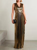 Elegant V-neck Gold Painted Pleated Maxi Dress