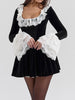 Elegant Velvet Lace Trimmed Mini Dress