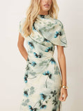 Exquisite Floral Print High Neck Cape Drape Bodycon Maxi Dress