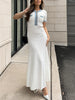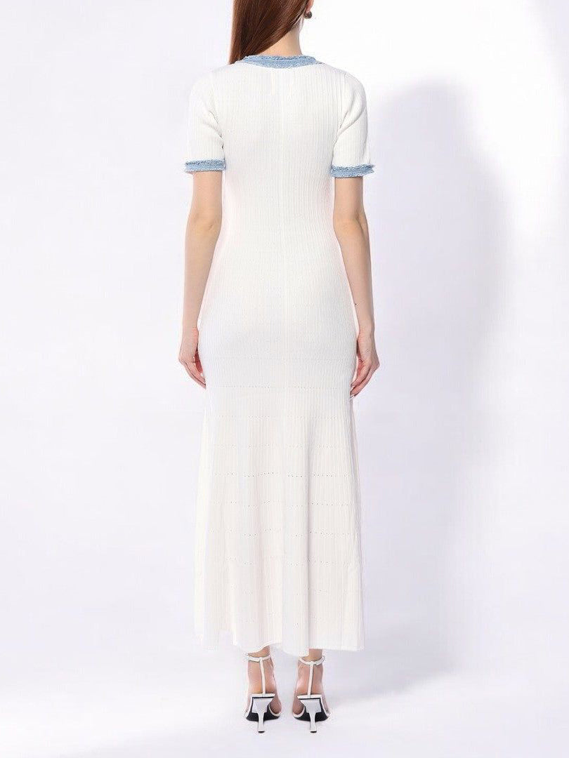 Fashion Denim Patchwork Knitted Tight Maxi Dress