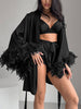 Feather Stitching Underwear Shorts Robe Three-piece Suit