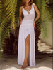 Luxury Mesh Semi-sheer Side Slit Cutout Maxi Dress