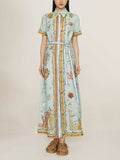 Modern Surrealist Unique Ocean Print Summer Maxi Shirtdress