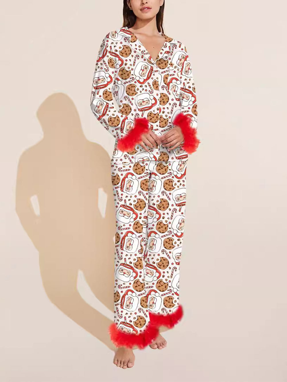 *Soft and comfortable *Santa Claus print pajama set *Elastic waist