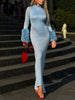 The light blue hue is fresh and elegant, suitable for all skin colors, making you stand out from the crowd. Whether you are attending a wedding, dinner or formal party, this dress is your ideal choice. Pair it with a pair of high heels and exquisite accessories to easily create a stunning and elegant look. Let this high-neck, long-sleeved light blue Tencel dress add glamour and charm to every important moment of yours.