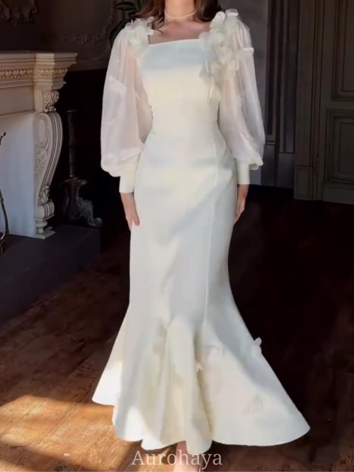 Square Neck Long Sleeve Floral Maxi Dress, DES121