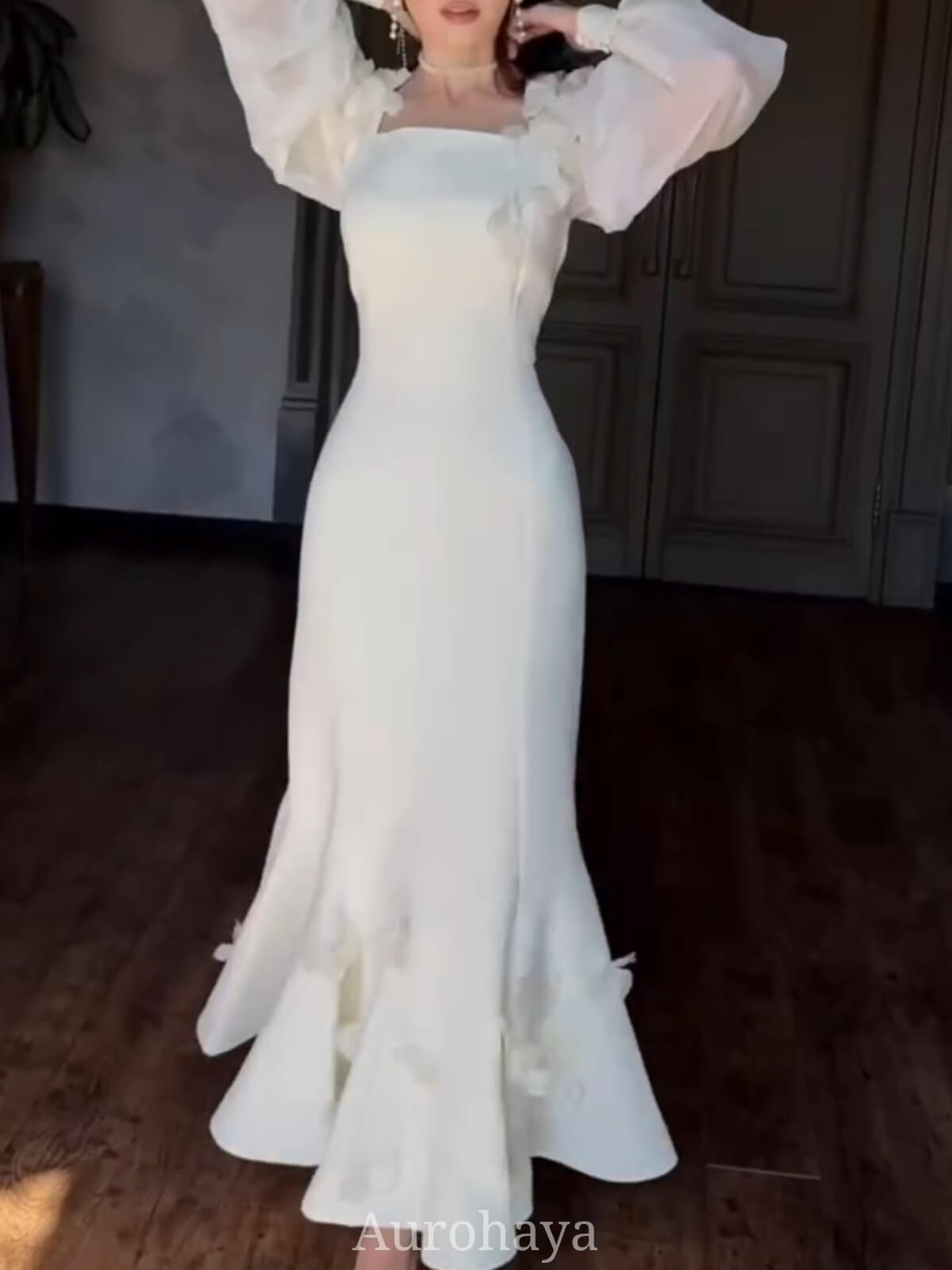 • Maxi length with subtle side slit and mermaid-inspired flare