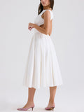 Stylish And Elegant Solid Color Round Neck Backless Sleeveless Midi Dress