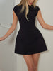 The versatile design of The Cap Sleeve Mini Dress makes it a great canvas for personal styling. Pair it with sandals and a sun hat for a relaxed summer look or dress it up with heels and accessories for a more polished ensemble. The solid color palette allows for easy mix-and-match with your existing wardrobe.